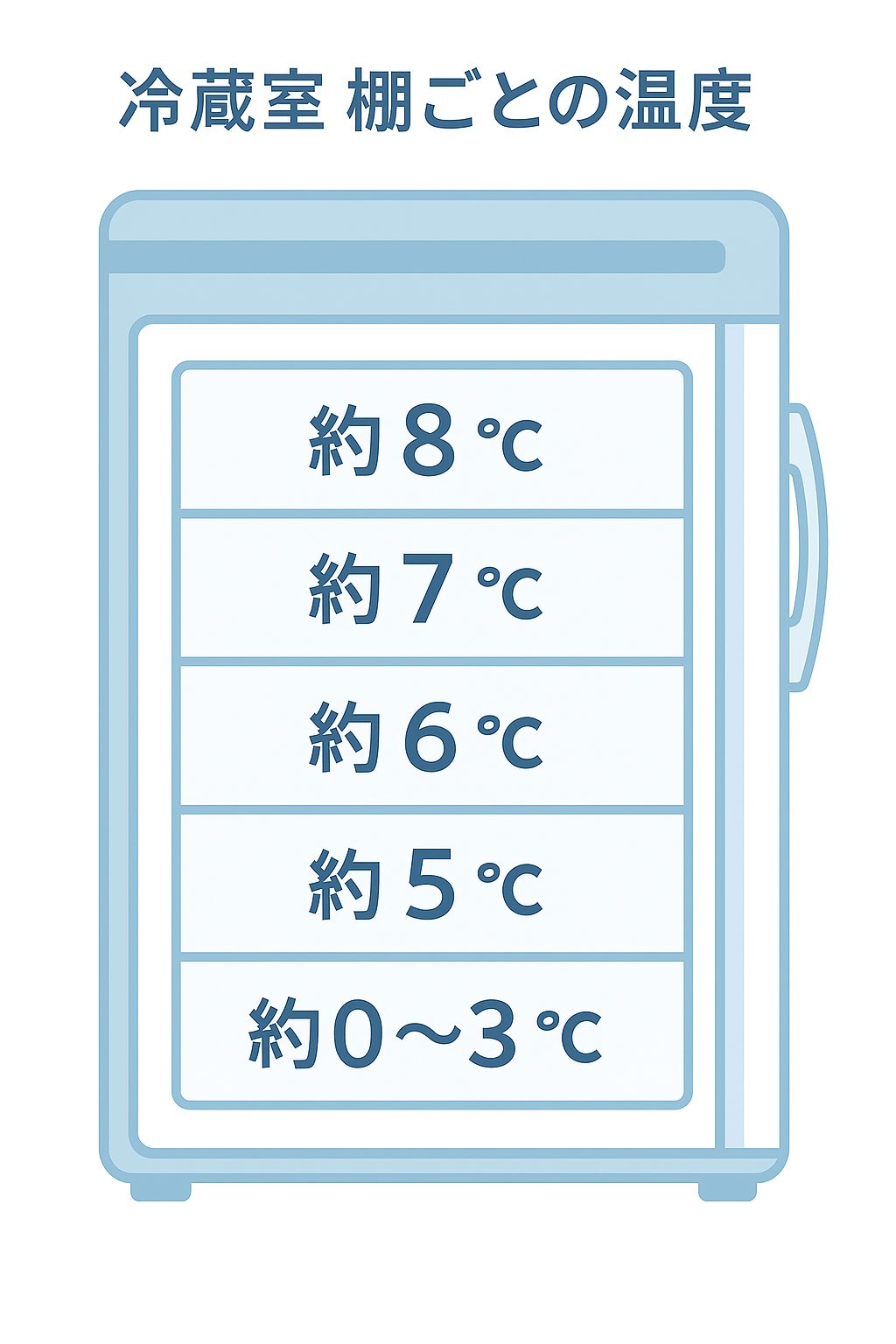 以上、冷蔵庫の温度と食品の安全な保存法を、 特に棚ごとの温度帯についてお伝えしました。